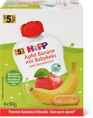 Hipp Bio Apple and banana squeeze pouch with baby biscuits from 1 year